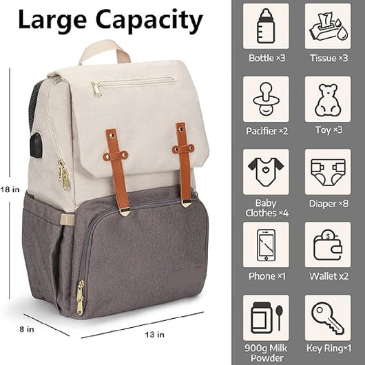 حقيبة ظهر للحفاضات - حقيبة حفاضات كبيرة مع وسادة لتغيير الحفاضات - حقيبة حفاضات مقاومة للماء قوية - حقيبة ظهر للسفر...